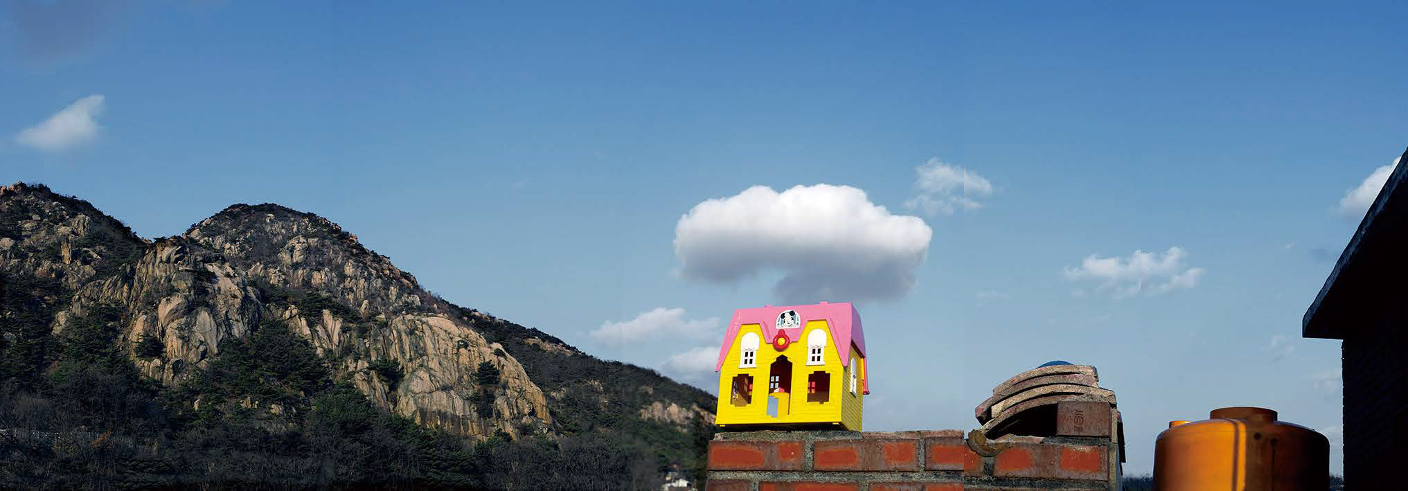 The Mickey's House series began after the artist found a toy Mickey's House, a Western-style two-story house, while wandering around the empty houses left behind by people in the redeveloped Bulgwang 4 district. The artist placed the Mickey house on the ruins or walls of the houses that people had left behind and captured the landscape. The Mickey house, with a house style that everyone dreams of in childhood, is placed in a place that has lost its human traces, revealing the contrast between the ideal and the real in a colorful yet empty way.