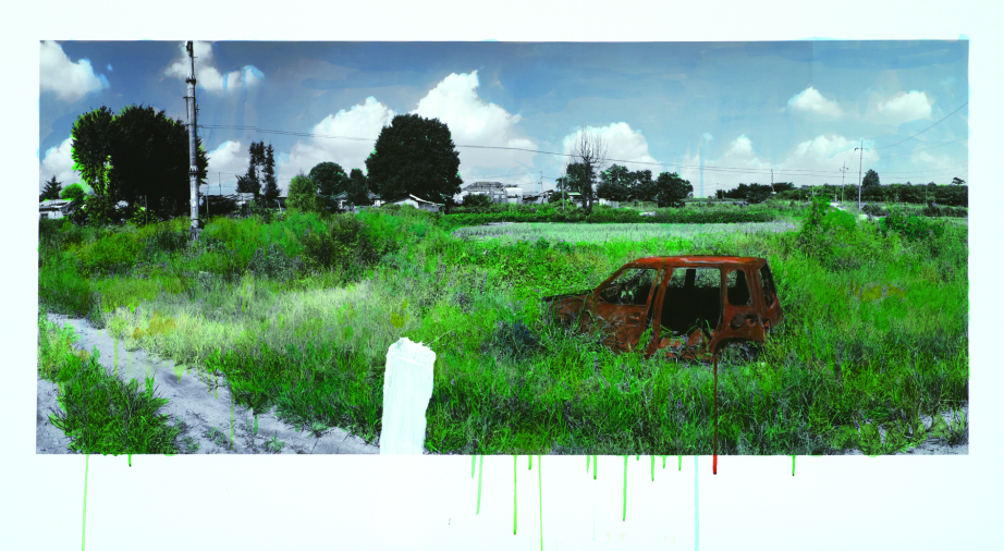 Wondering how to unravel this exploration of green, the artist divided the photographic image and applied paint on top of it. The artist's manipulations invite the viewer to actively imagine the original image hidden beneath the paint, rather than just looking at the neatly finished photographic work.