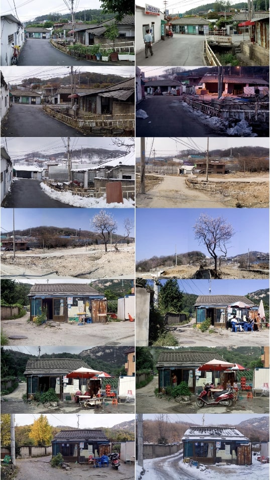 As the redevelopment progressed, the town's landscape gradually disappeared, and the photographs after the new town were transformed into documentary photographs that recorded the disappearance of the town, contrary to the original intention. Chronicle of Eunpyeong New Town is a video compilation of a vast amount of photographs of the transformation of Eunpyeong New Town from 2001 to 2015, when the old village’s landscape was disappearing and new buildings were being built.