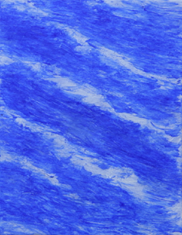 The repeated layering and erasure of blue and white generate a dynamic rhythm across the surface. Countless lines and planes accumulate, dissolve, and re-emerge, creating a tension between intentional control and contingency. This repetition is not merely a formal gesture; it is the trace of bodily duration, a record of the artist’s breathing and movement over time. The canvas thus becomes less an image than a temporal field in which action and presence are sedimented.