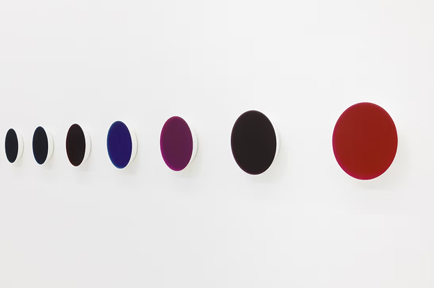 plane while Shin's jesmonite work dilates into the space beyond its mass.