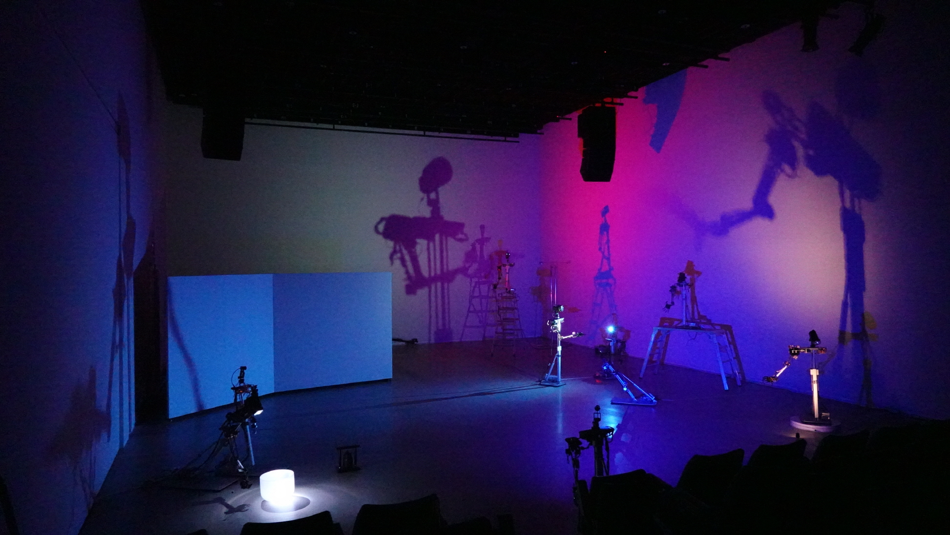 a shadow play performed by twelve humanoid robots, a number evoking the figure