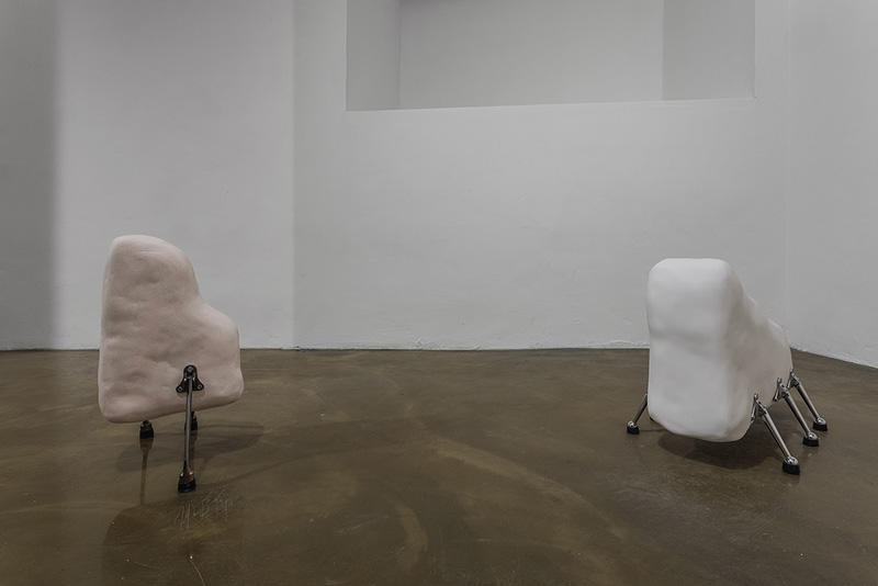 Jungyoon Hyen, On my way 1, 2019, Plaster, polystyrene foam, door stopper, 30x37x43cm, On my way 2, 2019, Plaster, plaster pigment, polystyrene foam, door stopper, 35x43x21cm, Installation view of 《You Again》 (os, 2019) ©Jungyoon Hyen