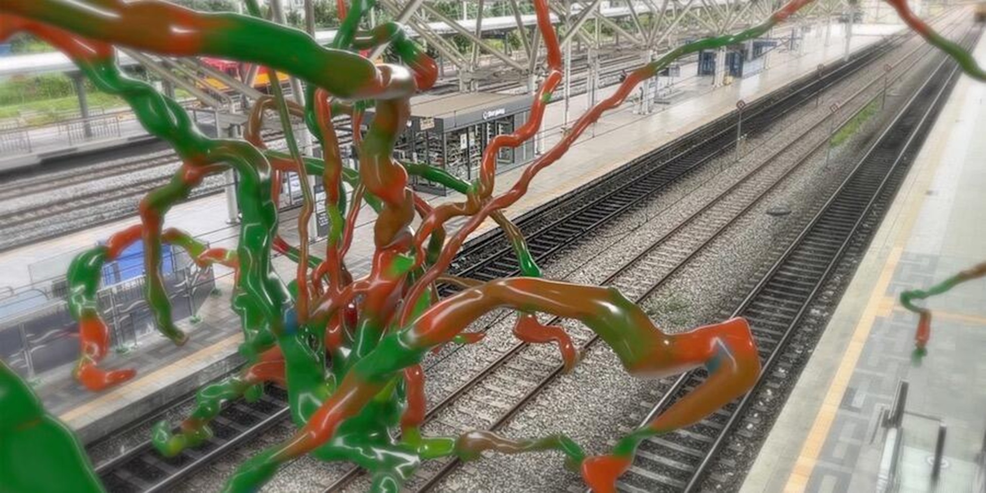 Jun Sojung’s video Syncope (2023) was commissioned by the National Museum of Modern and Contemporary Art's Korea Artist Prize and is being presented at Frieze Seoul by Barakat Contemporary (Seoul) in a reimagined installation. Syncope superimposes divergent sounds and speeds: trains traversing Asia and Europe, bodies crossing borders, migrating data and plants. Jun uses Syncope’s accelerative drive – running through past, present and future – to imagine ways of existence beyond linear movement.
