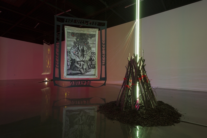 Thus, the exhibition title of 《Fire and Faggot》 suggests both treacherous sexual impulses and pleasure felt through punishment and imagination of the future that will arrive after the endurance of suffering, in addition to the interpretation of subjects as victims being punished under Christian doctrines. The narrative of 《Fire and Faggot》 unravels as follows: Oppression of homosexuality from the Christian perspective; intervention of the sorcery of Korean folk religion; struggle between the symbols of two different genres, icons in medieval art and Bujeok, Korean talisman whose origin can hardly be found; and Ttongkkochung Ttongkkochung is a term for demeaning a male homosexual and corresponds to faggot in English. Naturally, here the word was used to disparage oneself. In this exhibition, Dew Kim presents stages in which a lowly being is sublimated into a pure being, a new extended race or tribe of queer people reborn through the rite of fire and embarking on a voyage for their colony.
