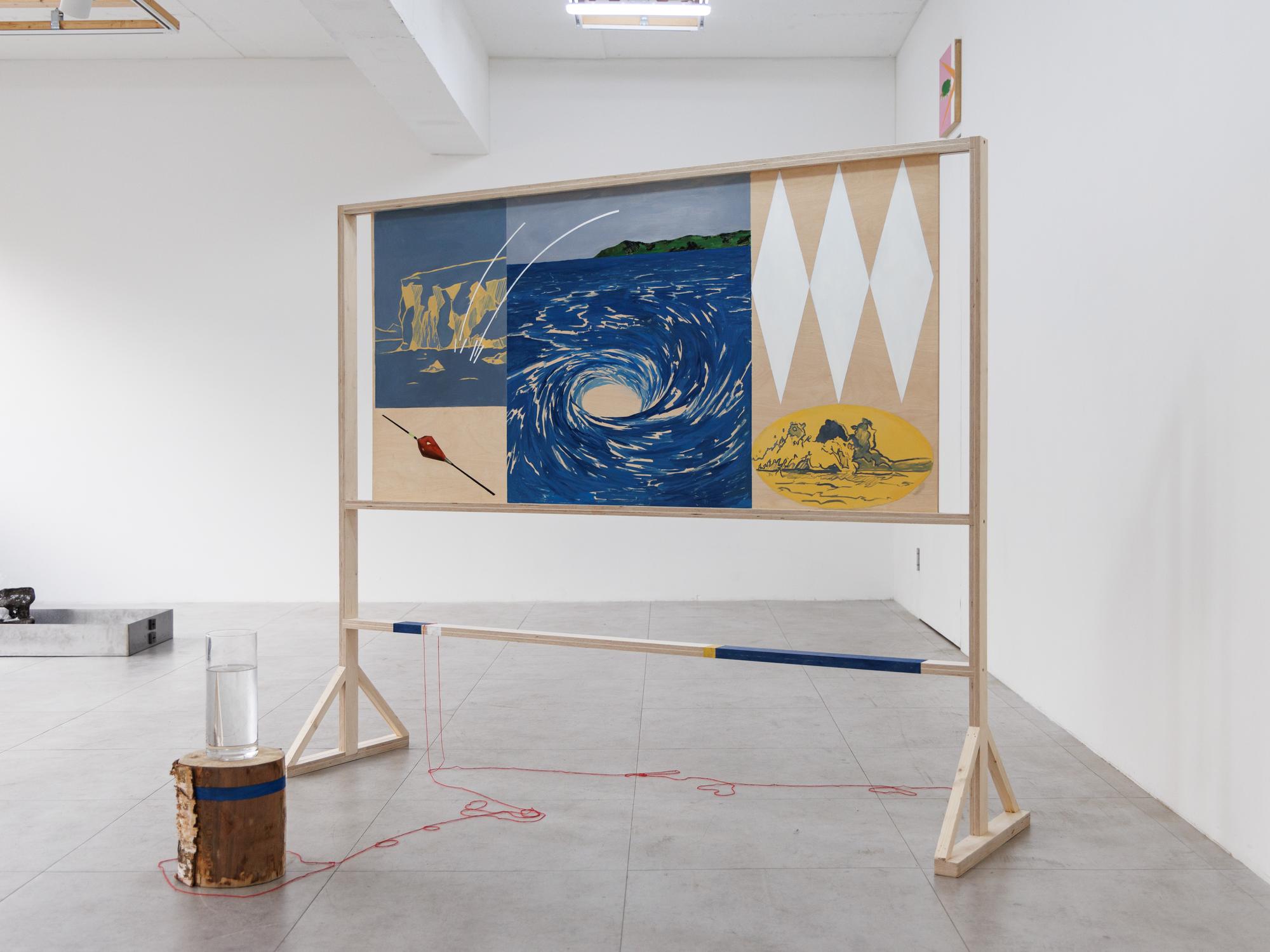 divided frames across her canvases depict confrontations—between nature and