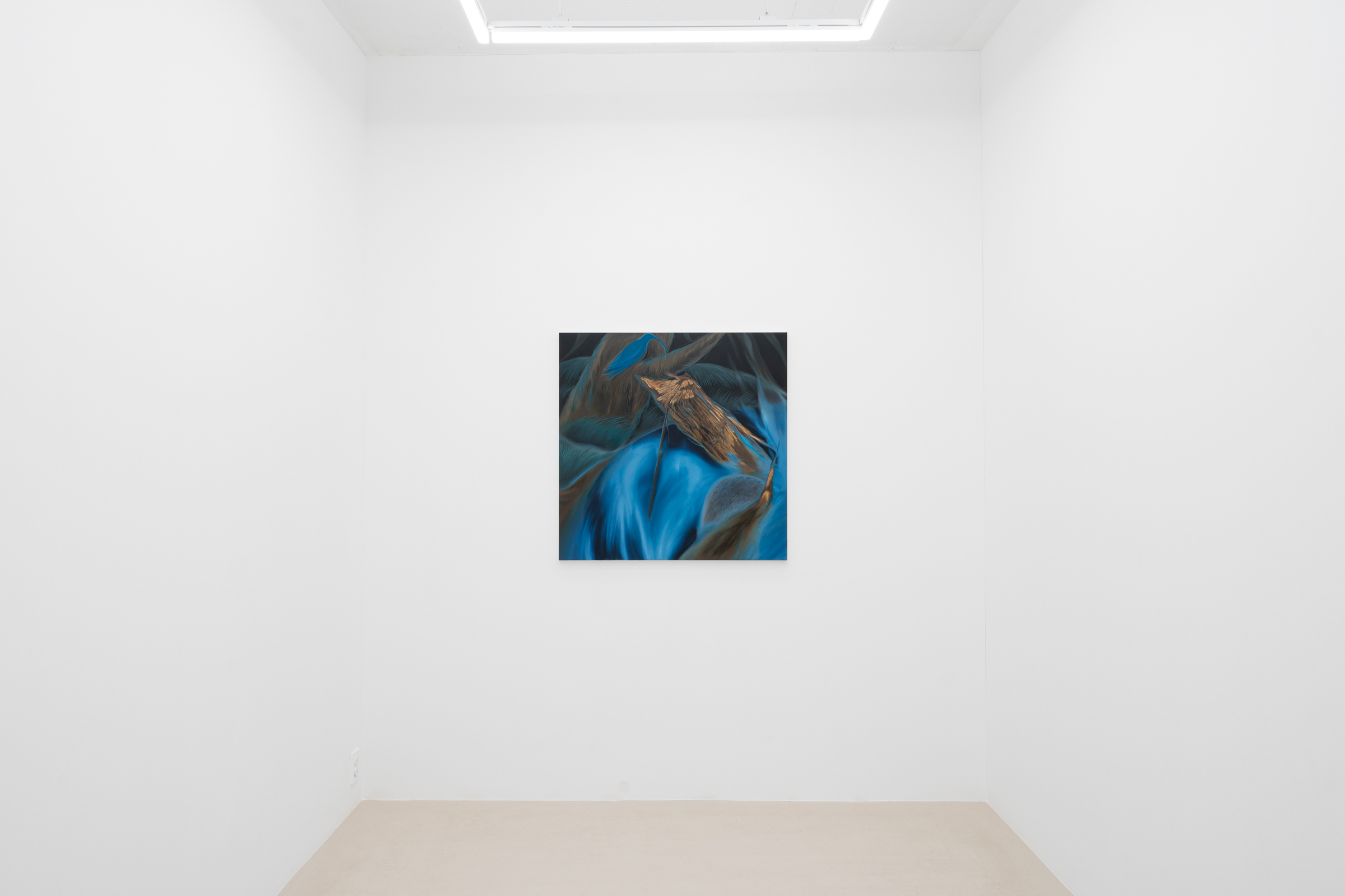 In her 2025 solo exhibition 《BENEATH BRANCHES》 held at WWNN, Greem Kim captured on canvas the deepest sensations encountered while wandering through dark forests—the primordial source of life and the undifferentiated state of all living beings—manifested as enigmatic blue light and abstract volumetric forms.
