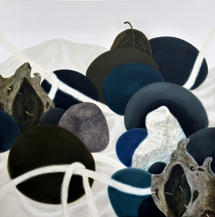 Greem Kim, Lake and Pebbles Sitting on a Rock, 2018, Oil on canvas, 130.3x130.3cm ©Greem Kim