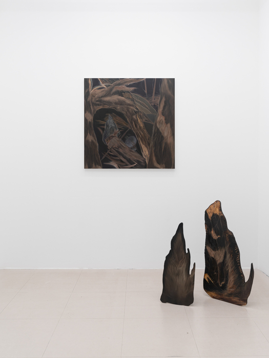 Art critic Soyeon Ahn notes in the exhibition preface that Kim’s forests carry memories of the body, particularly the maternal body. Her forests evoke “the womb as a primordial, isolated space encompassing life and death, where inside and outside are continuously connected, darkness and light coexist, and the boundaries of vision and touch are merged.”