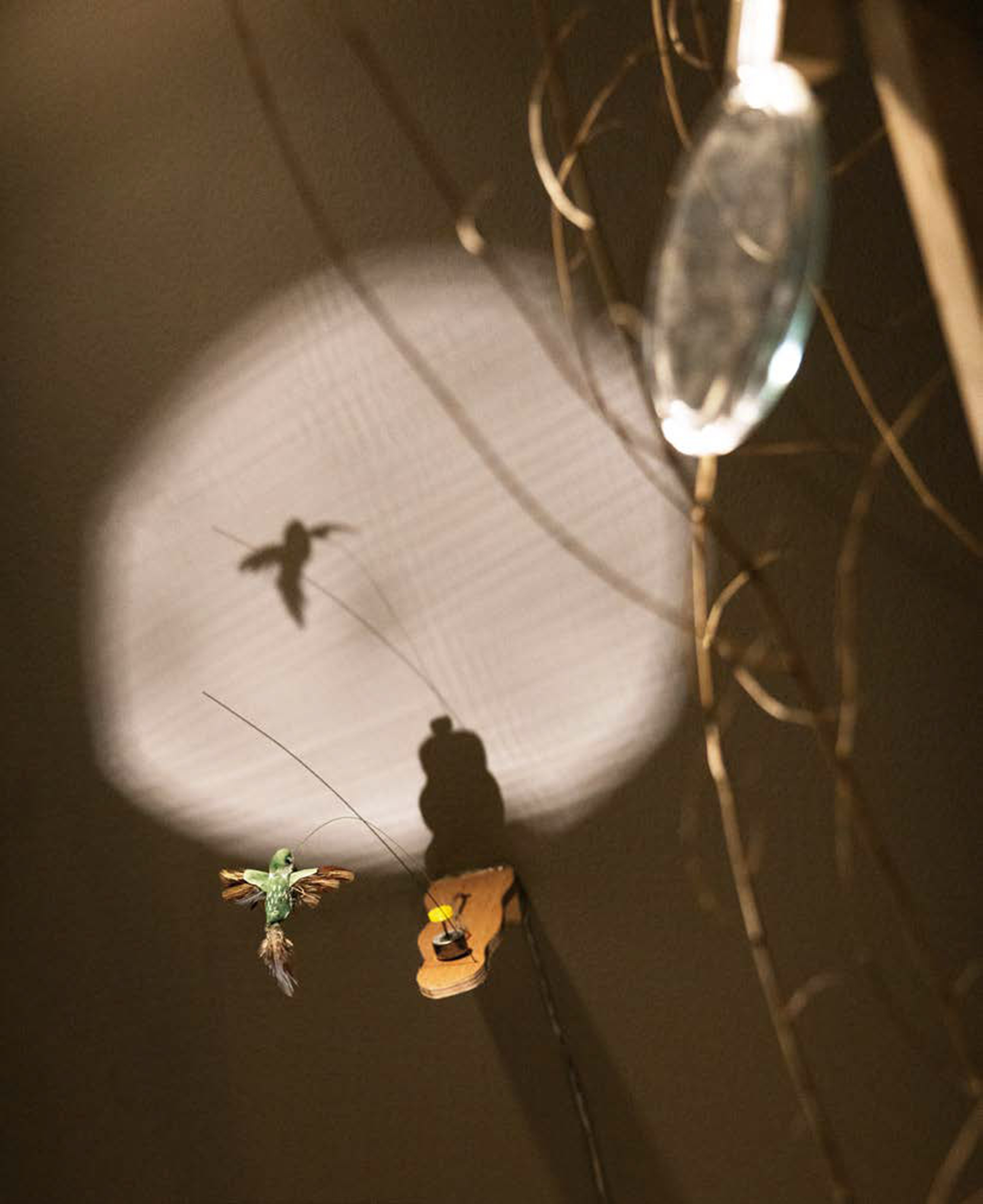 synthesizer. The fan turns, and a butterfly model—with a small light and motor