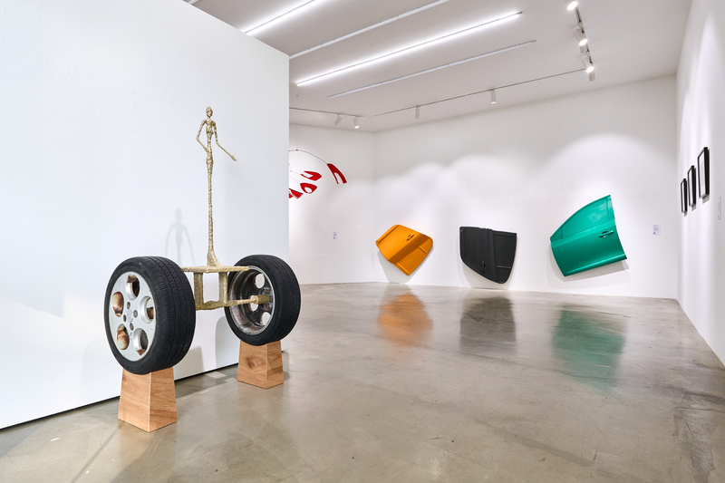 artworks with discarded car parts, dissolving the boundary between art and
