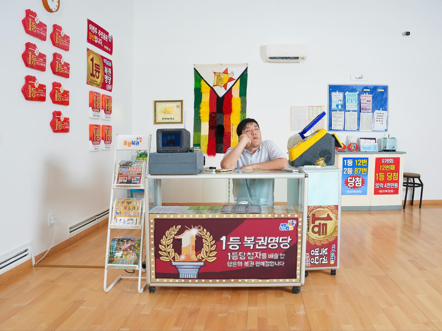 lottery shop within the gallery and inviting visitors to purchase tickets and