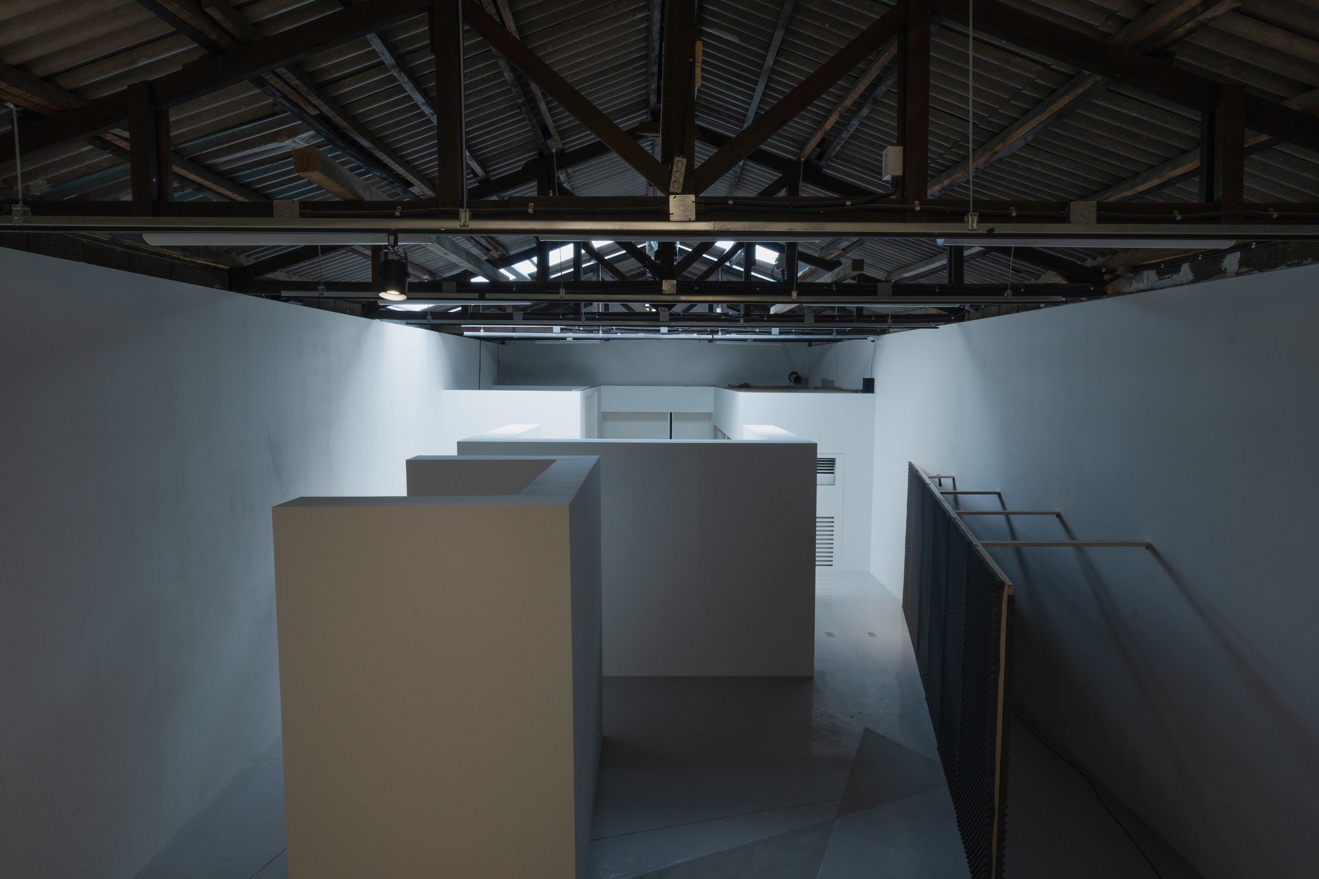 The materials that constitute the partitions—wood, steel, and stone—simultaneously hold sound within a formalized space while transforming the sounds that leak outward into distinct material qualities, allowing them to drift toward unpredictable destinations. As visitors moved through the exhibition, they could attend to each segmented sound individually or choose to follow the sounds as they wandered at random.