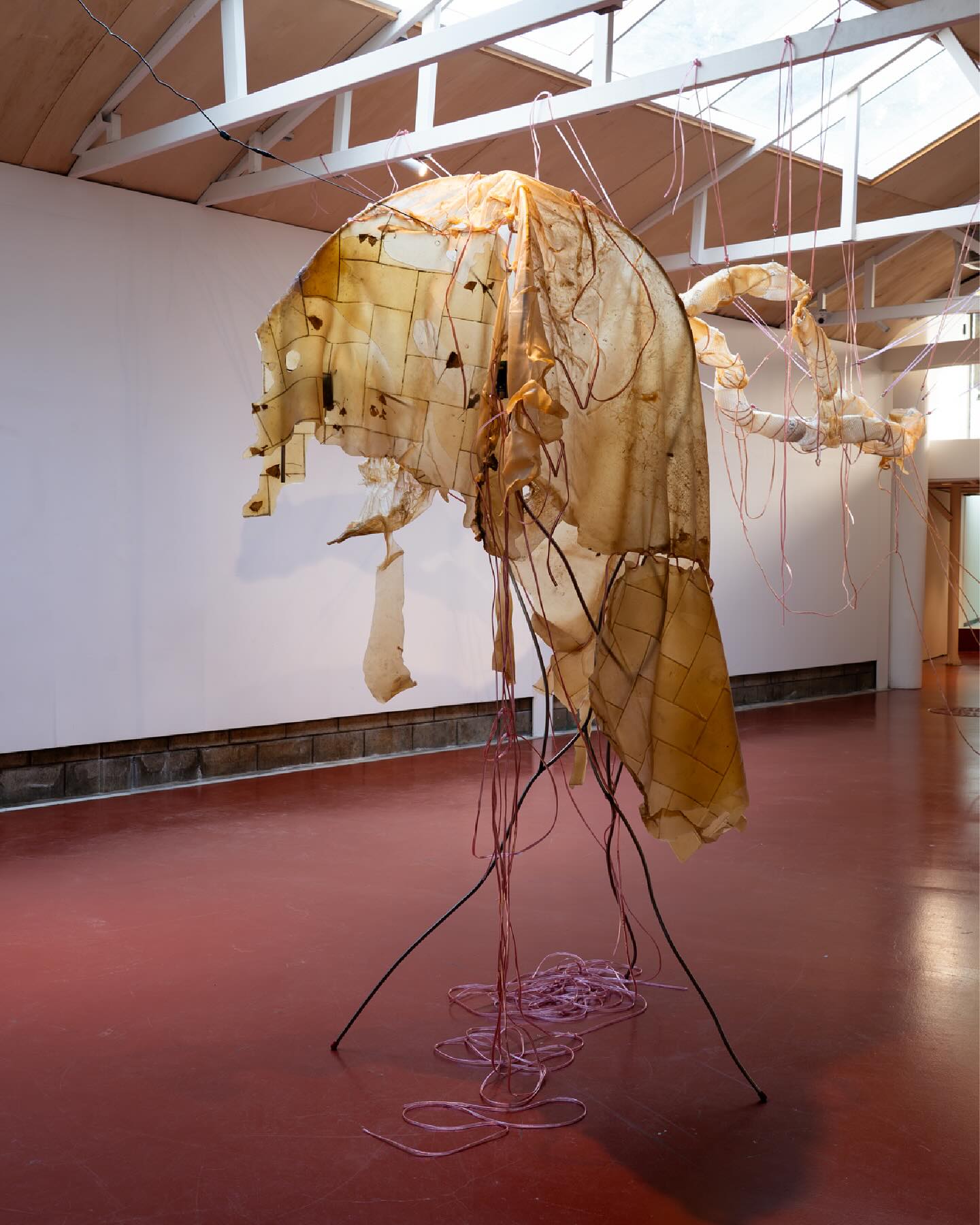 The exhibition 《Slough and Trajectory》, the final chapter of the project, becomes a site where the residues of the preceding album and performance are restaged within space. The latex used in the August performance was collected and transferred to the exhibition venue, where the footprints, wrinkles, and traces left upon its surface were preserved intact.