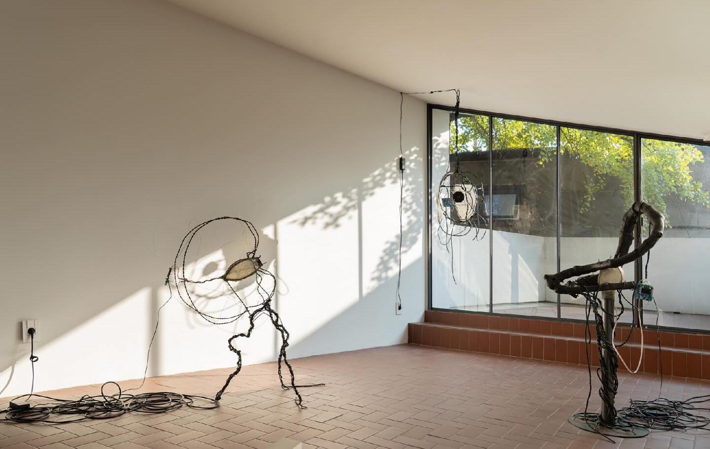 Created explicitly to produce sound, these sculptures rely entirely on the vibrations, amplitudes, and frequencies of speakers embedded within them—speakers custom-built by the artist himself. Depending on their configuration, each speaker emits a different sound, and the resulting output varies according to how the sound is shaped and where it is positioned.