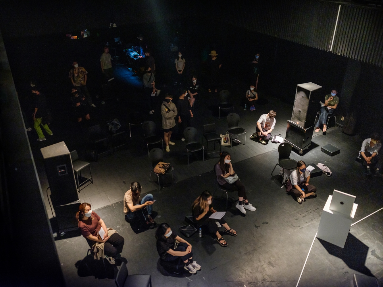 In encountering the work, viewers may close their eyes and concentrate in order to listen, or, at other moments, find themselves facing unfamiliar speaker forms. Through this process, the visually centered mode of exhibition viewing is disrupted, and the hierarchy of the senses becomes unsettled and reconfigured.