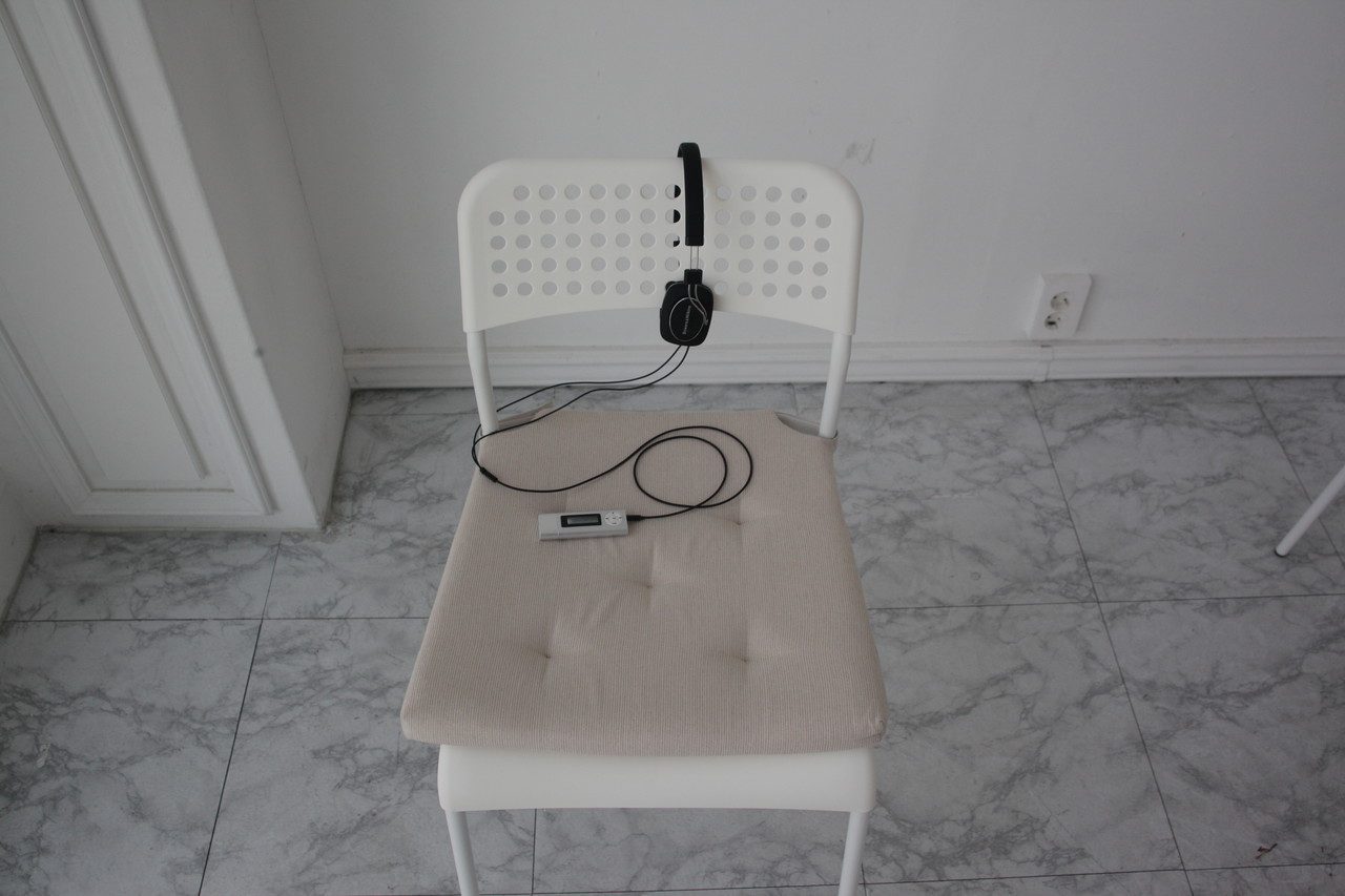Seo Minwoo, Traveler E&C, 2021, Headphone, mp3 player, Dimensions variable, 1’04 ©Seo Minwoo