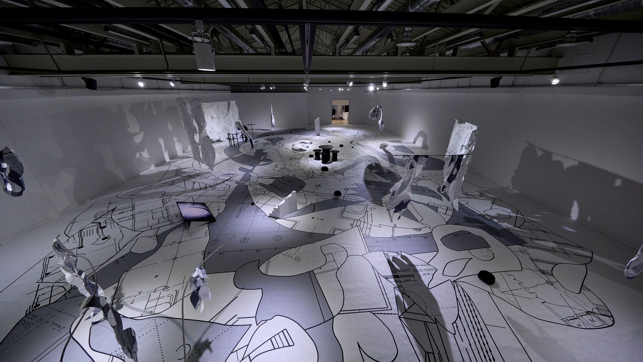 These recomposed plans were realized on the gallery floor, unfolding into a single structural scene where video, drawing, and sculpture intersect. In addition, sound compositions created by three musicians—Anda Young, Jang Young-gyu, and Park Daham—function as a rhythmic framework for reading the archive, guiding the audience’s movement and gaze, and allowing the pace and structure of the records to be perceived differently depending on the time of viewing.