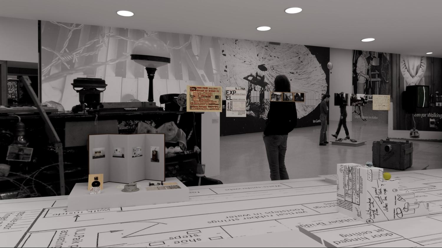 Within each box categorized under the five themes are smaller boxes containing documents and objects. The video depicts the infinite cycle of 'question-translation-transformation' in archiving, opening and closing boxes, and unfolding and folding documents. The materials discovered from the collections of two individuals, Yoo Joon-sang and Lim Dong-sik, are connected to artist Nam June Paik and curator Kim Hakryang, and connected by the hand of Songhee Noh scanning the documents.