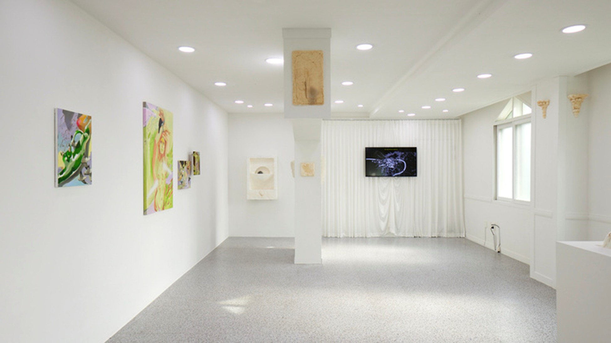 In this exhibition, the artist treated the venue itself as a material, renovating previously concealed areas and designing an interior architectural structure that materialized the exhibition’s circulation—the path through which viewers encountered the newly produced video work.