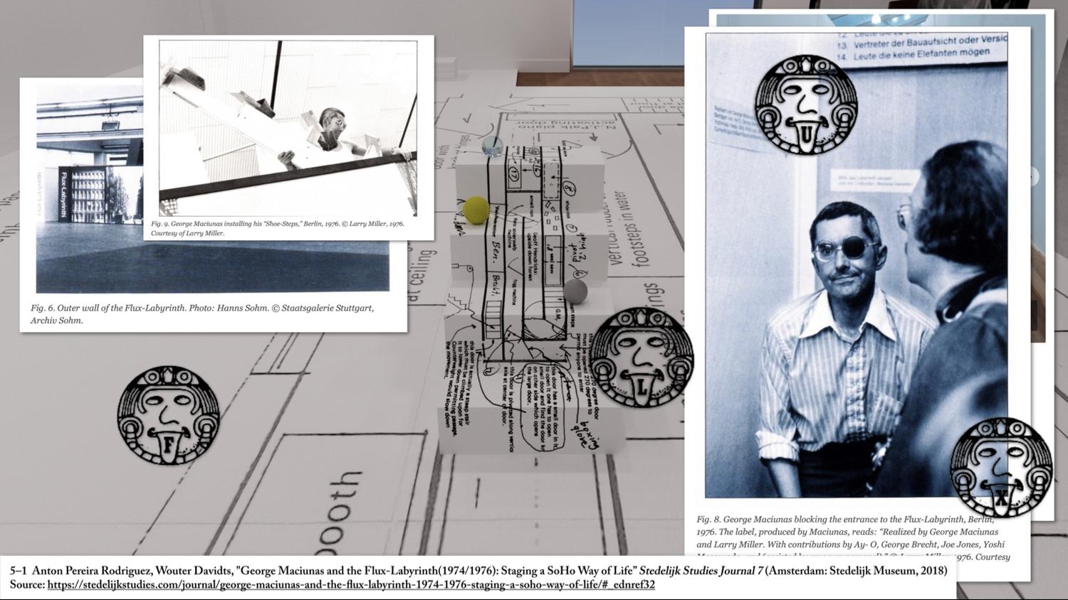 The diagram produced for Dia;grams included a bird’s-eye view of the exhibition space at AVP Lab, along with indications of the placement of the works, viewing routes, and scale. Offering an overview of the exhibition’s structure while simultaneously corresponding to the structure of the video, the diagram guides viewers to encounter various ancillary elements derived from the exhibition—such as documentation photographs, video footage, archival texts, and critical writings.