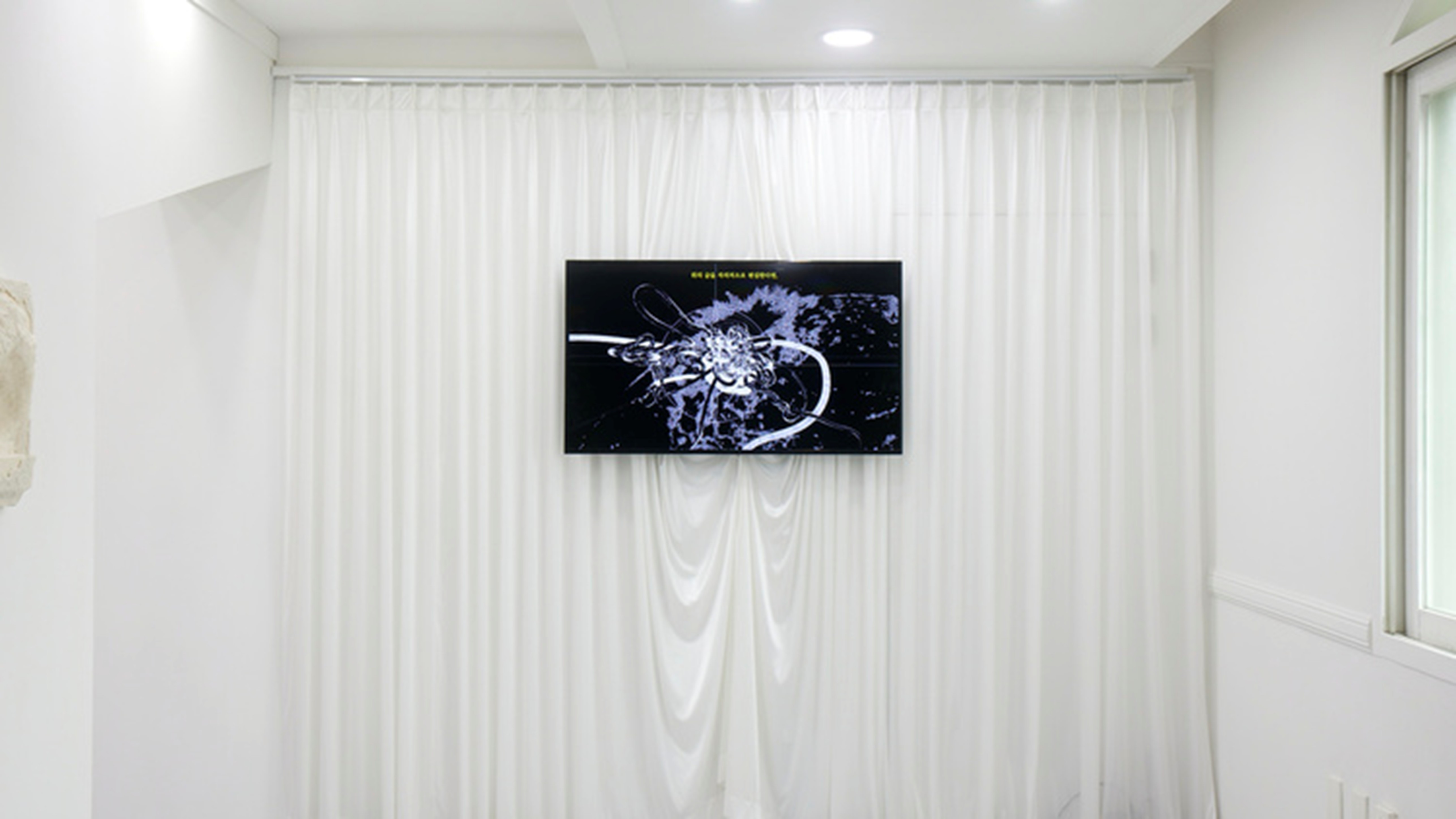 Challenging the assumed accessibility of digital video media as something that can be viewed anytime and anywhere, the artist reconfigures the relationship between the exhibition space and the virtual space within the screen. To this end, the video appropriates the DOOSAN Gallery itself as a newly constructed virtual exhibition space that encompasses her past works in their entirety.