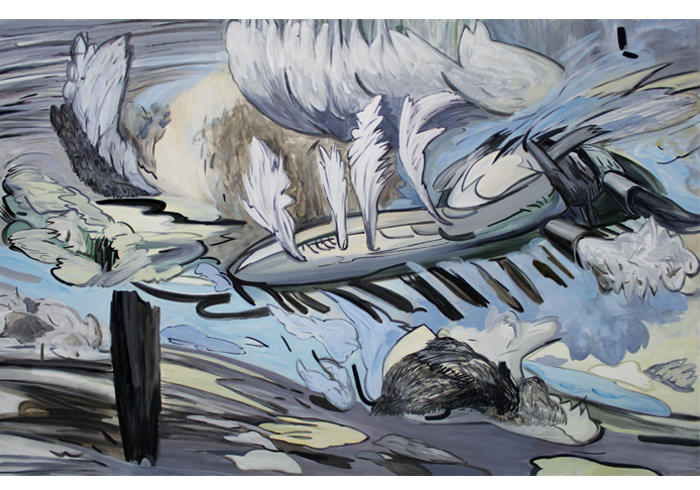 Choi Suin, Spaceship Beneath the Clouds, 2015, Oil on canvas, 145x227cm ©Choi Suin