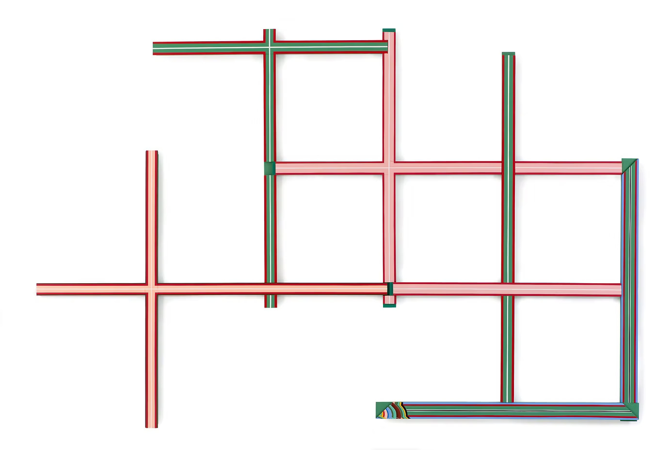 By dismantling and reconfiguring the structures of traditional architecture, her work reflects on the relationship between two- and three-dimensional forms, as well as the inside and outside of painting, while continuing to experiment along the boundary between tradition and the contemporary.