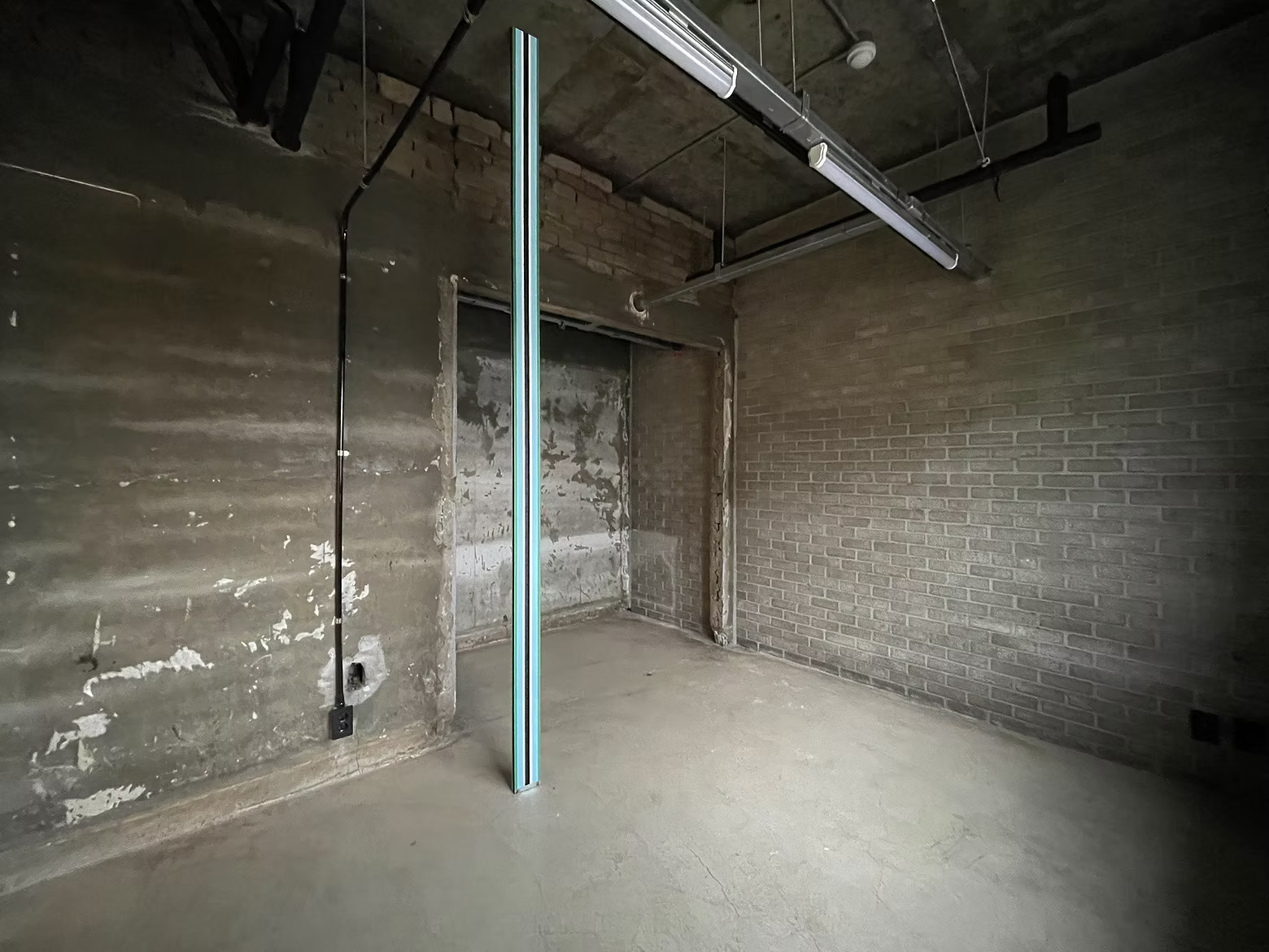 Ahra Kim, Vertical Line, 2021, Acrylic and pigment on iron, 306.9x11.4x2.4cm. Installation view of 《The Result Show of Suchang Youth Mansion Artists in Residency》 (Suchang Youth Mansion, 2021) ©Ahra Kim