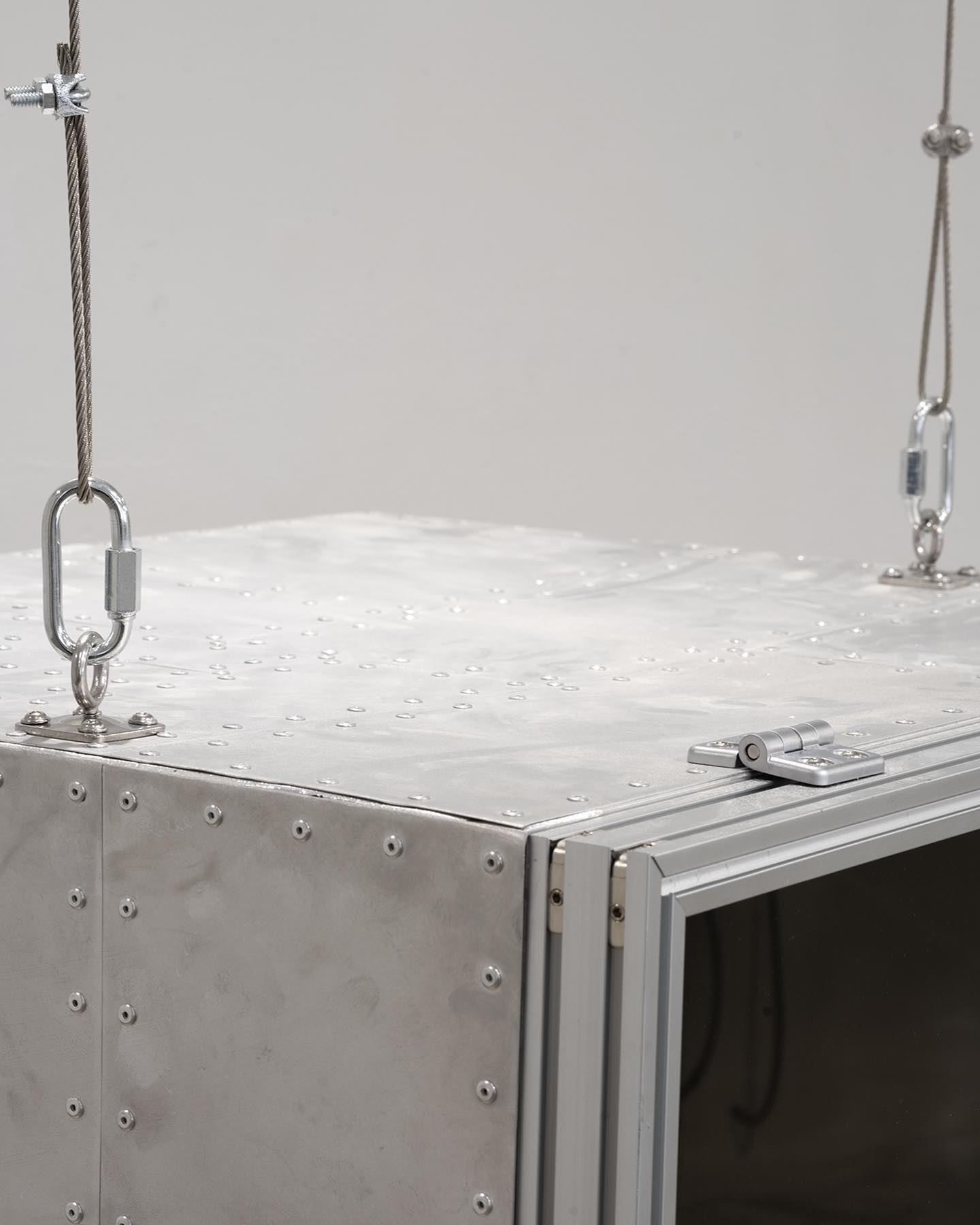 Lee also employs techniques such as the manipulation of temperature and humidity, as well as light painting, to connect the photographic image with the natural phenomena it depicts. For example, in Mig01 + Thunderbolt, a work based on the motif of lightning, the frame moves up and down as if in flight, echoing the image of lightning it contains. The frame, which takes the form of a large cube, is also constructed in a manner reminiscent of the surface structures and assembly methods of early aircraft.