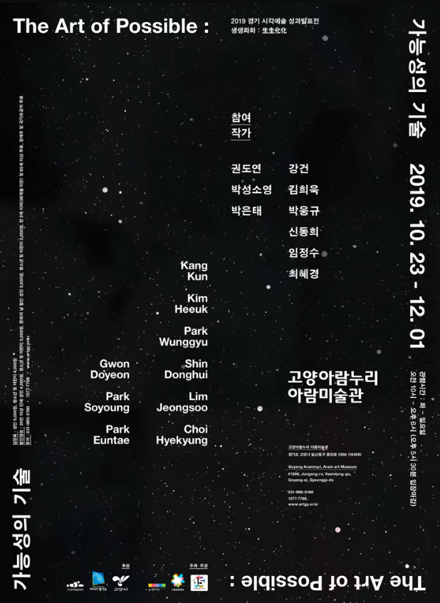 In October 2019, Aram Art Museum held the 2019 Gyeonggi Visual Arts Achievement Exhibition 《2019 Saengsaeng Hwahwa: The Art of Possible》. Since 2016, the Gyeonggi Visual Arts Achievement Exhibition “Saengsaeng Hwahwa” has continued into its fourth edition, organized through collaboration between the Gyeonggi Cultural Foundation and the Goyang Cultural Foundation. As part of the Gyeonggi-do Arts Promotion Fund, this project has been carried out to discover and support young artists in the Gyeonggi region, activate artistic activities, and expand opportunities for cultural enjoyment within the region.