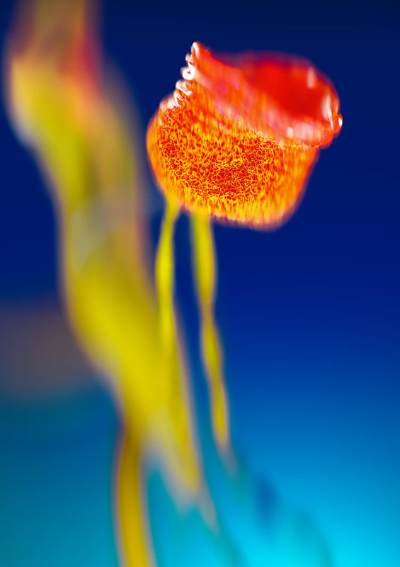The resulting images she captures, though governed by logical rules, do not appear inanimate; instead, they evoke the imagery of pulsating cells.