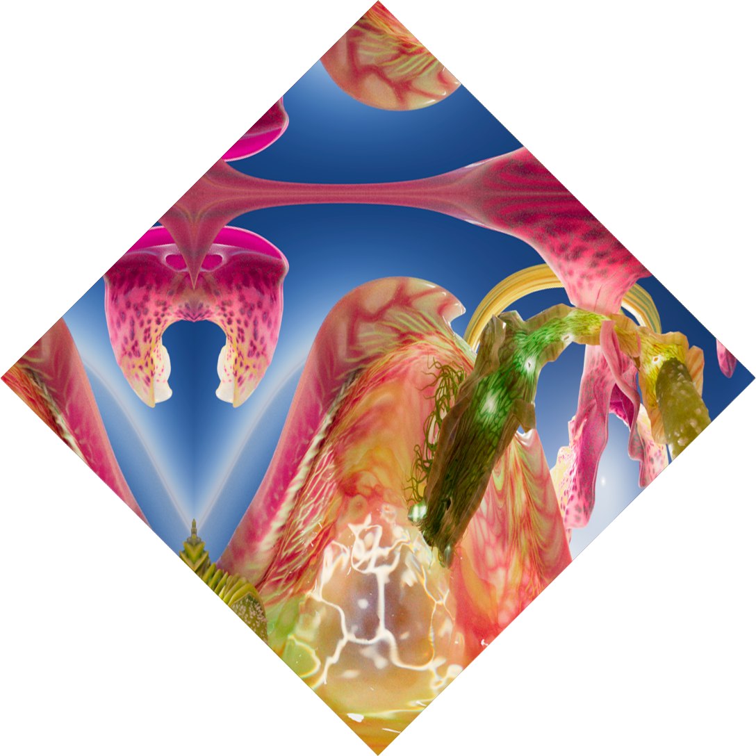 The digital plants and organisms cultivated in her virtual environments are hybrid beings germinated across multiple layers, occupying an intermediary position that moves between nature and technology, reality and the virtual. In doing so, they blur the boundaries between the natural and the artificial, posing the question, “What do we see and what do we believe?” while creating subtle fractures in the viewer’s perception.