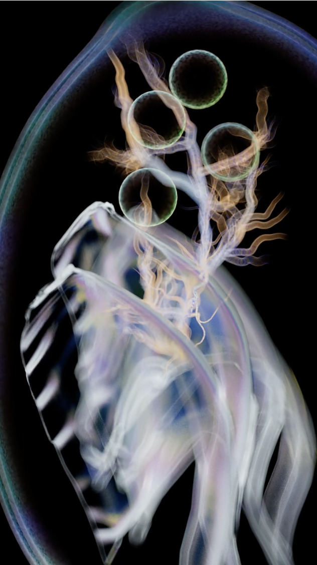 Kim Uljiro, 胞(Cell), side view, 2023, 3D animation, single-channel video, color, silent ©Kim Uljiro