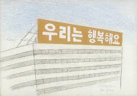 the irony of seeing the North Korean propaganda "We Are Happy" on a
