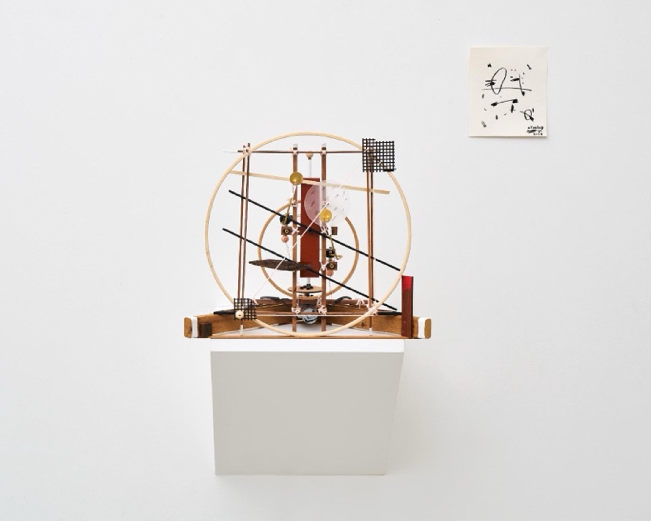 Yang Jung Uk, I'm not sure though, 2024, wood, thread, wire, LED, and PLA, 29 x 20 x 20 cm ©Yang Jung Uk