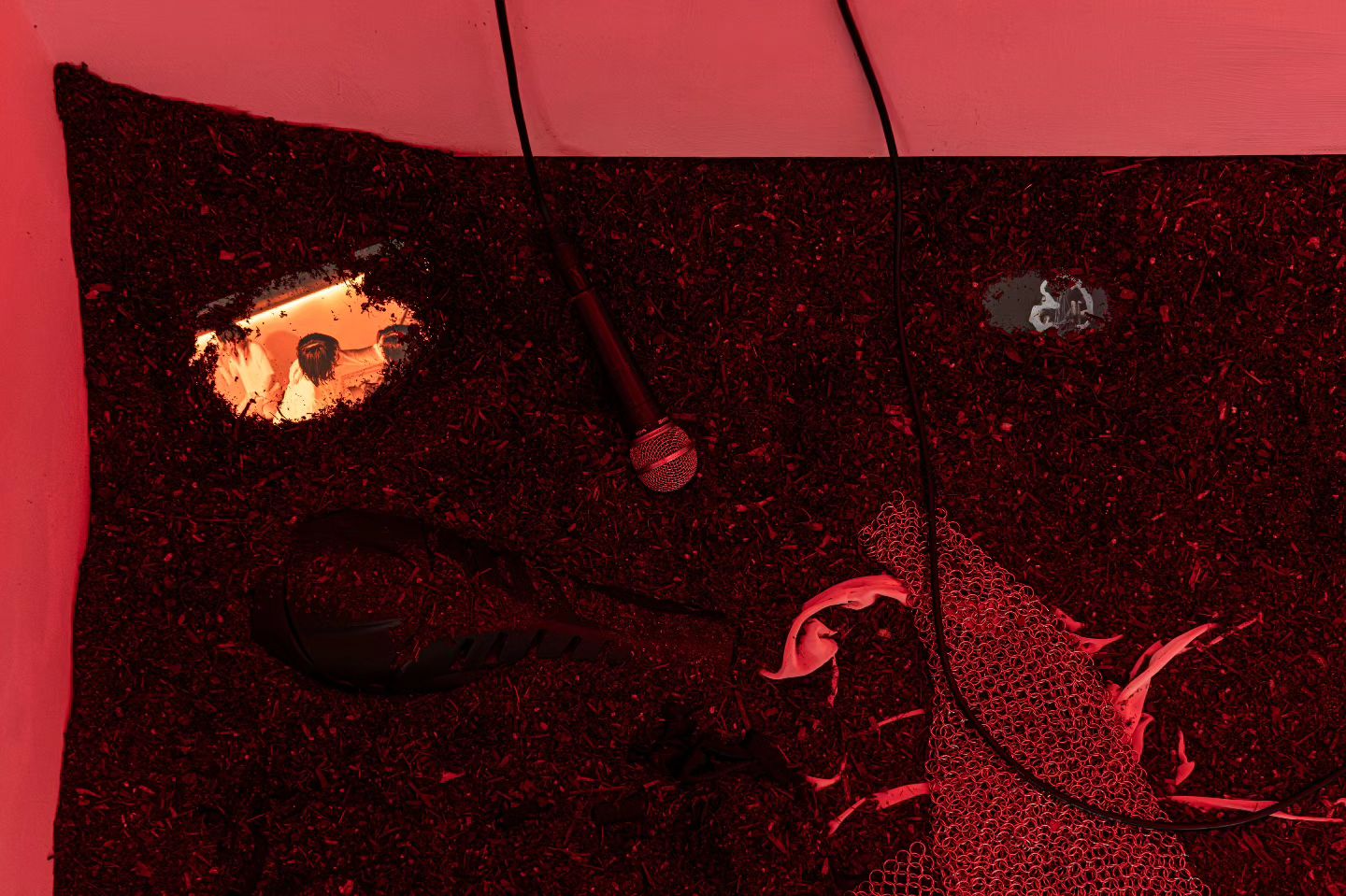 Following the two performances, the remnants gather at Space 413, a renovated, standalone factory in Mullae. The venue bears a boldly unfamiliar structure, as if recording the trace of past events. Here, the exhibition leaves visual, tactile, and sonic marks and fragments from the previous performances. Through the performances, we generated two questions: