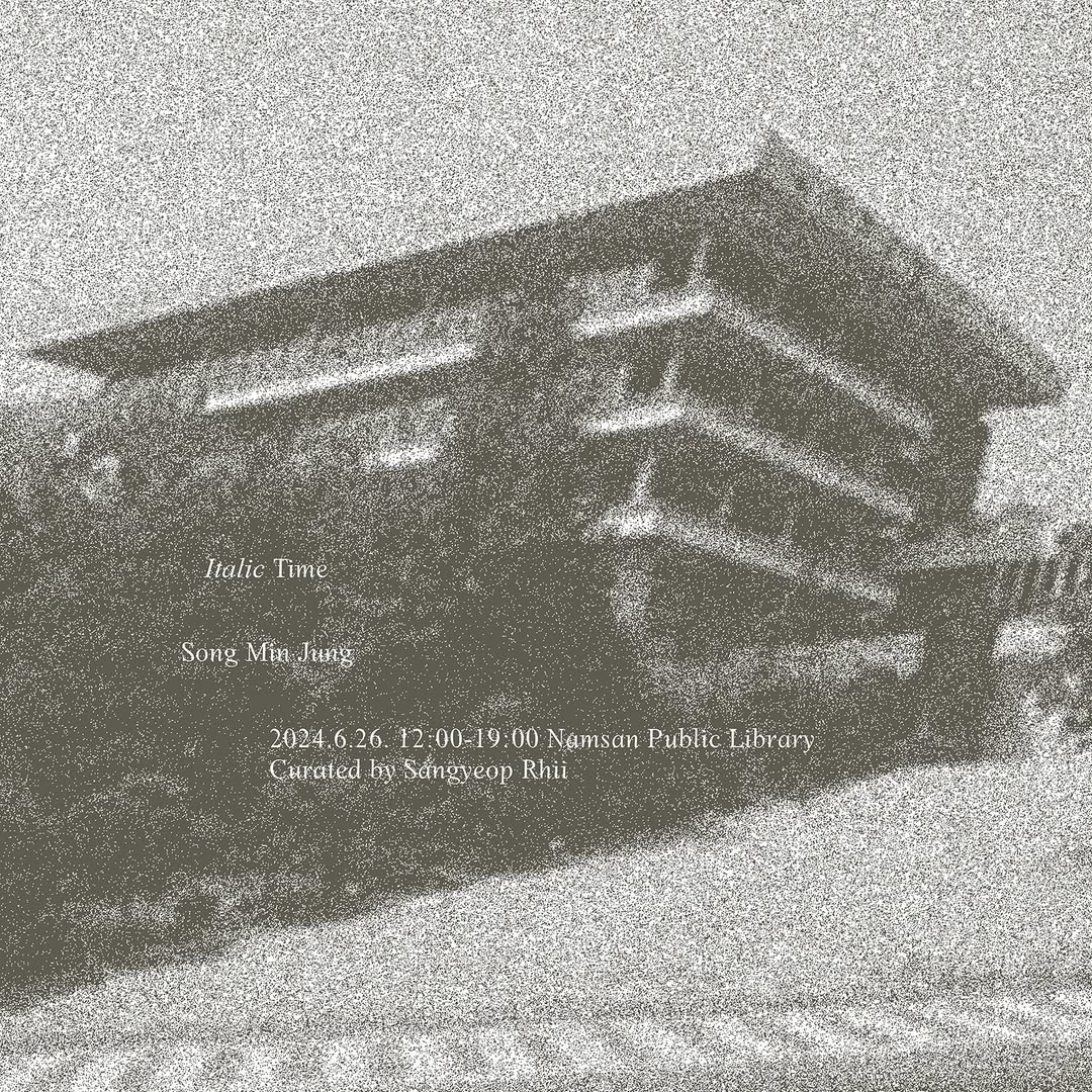 We decided to call this single day “Italic Time.” Over the course of the day, memories and time from past works are recalled and then returned to the present moment and place—spinning between past and present. Alongside Song Minjung’s JOE (2021) and Atmosphere (2023), the library hosts works detached from, or used as clues to, previous projects. Once removed from their original contexts and set on a new page, they operate like italicized words/sentences—working as emphasized images/scenes. They blink again, signaling what comes next. 《Italic Time》 resembles a hard-to-name potential interval—after a past exhibition and before an upcoming one—the valley time that lies between mountains. This is a time that exists to store energy and drink water.