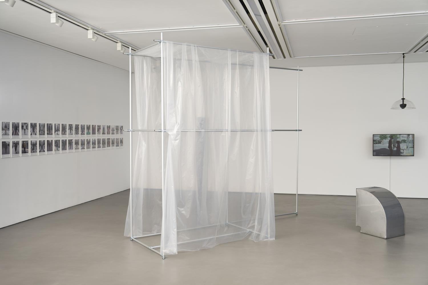 Her gaze captures architectural landscapes of repeated crumbling and building with the life cycles of an aging city. Into the gallery, she brings architectural materials that have been left visible, as if it were impossible to conceal their traces; discarded furniture deemed to have outlived its usefulness; and curtains that await the new.