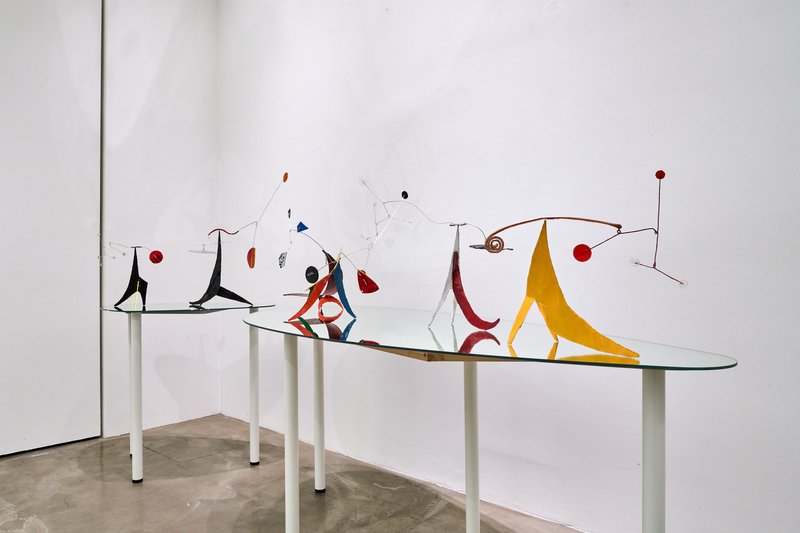 from junkyards. Alexander Calder’s mobiles, reimagined with car headlights; Ellsworth Kelly’s paintings, recreated with car doors; Alberto Giacometti’s sculptures, crafted from Kia Morning wheels; and Richard Serra’s sculptures, built from car mufflers and hoods, each work