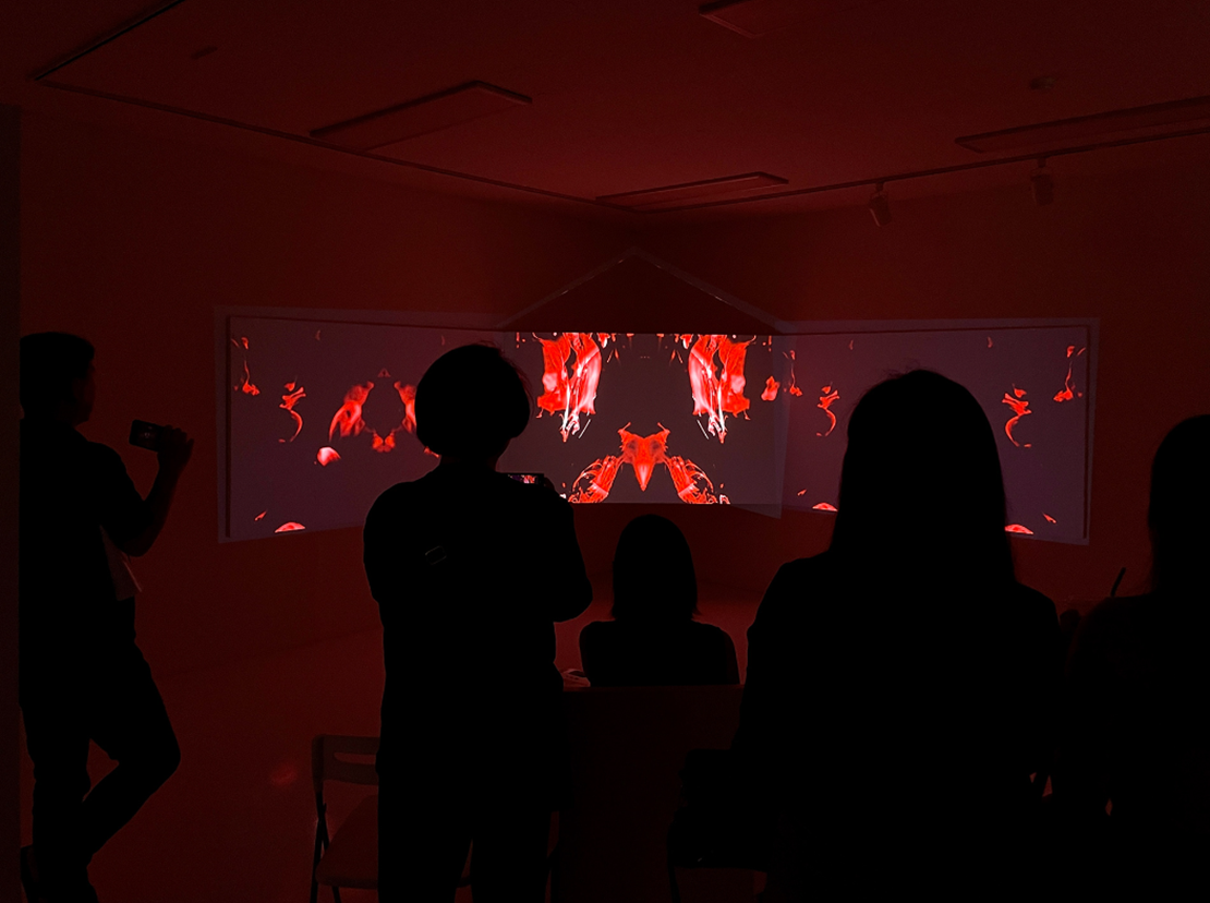The works presented by Daewon Yun in this exhibition are characterized by digitally fragmenting his own gestures in a kaleidoscopic manner or amplifying visual disorientation through feedback. While such effects could be understood as digital spectacle techniques that dazzle audiences, Yun’s works differ in that he actively employs digital methods to focus on the body and gesture themselves—as intentional, structured movements, akin to dance, and as a body performing specific actions.