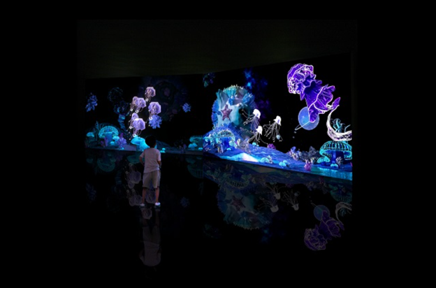 In the final section, Hong Sungdae’s work “How Far Can We Go?” unfolds across a 16-meter media wall, combining unknown outer space and the deep sea into a world of infinite imagination. By exploring diverse terrains and ecosystems in space and studying virtual life forms, viewers can simultaneously experience the mystery of the universe and the vitality of an aquarium.