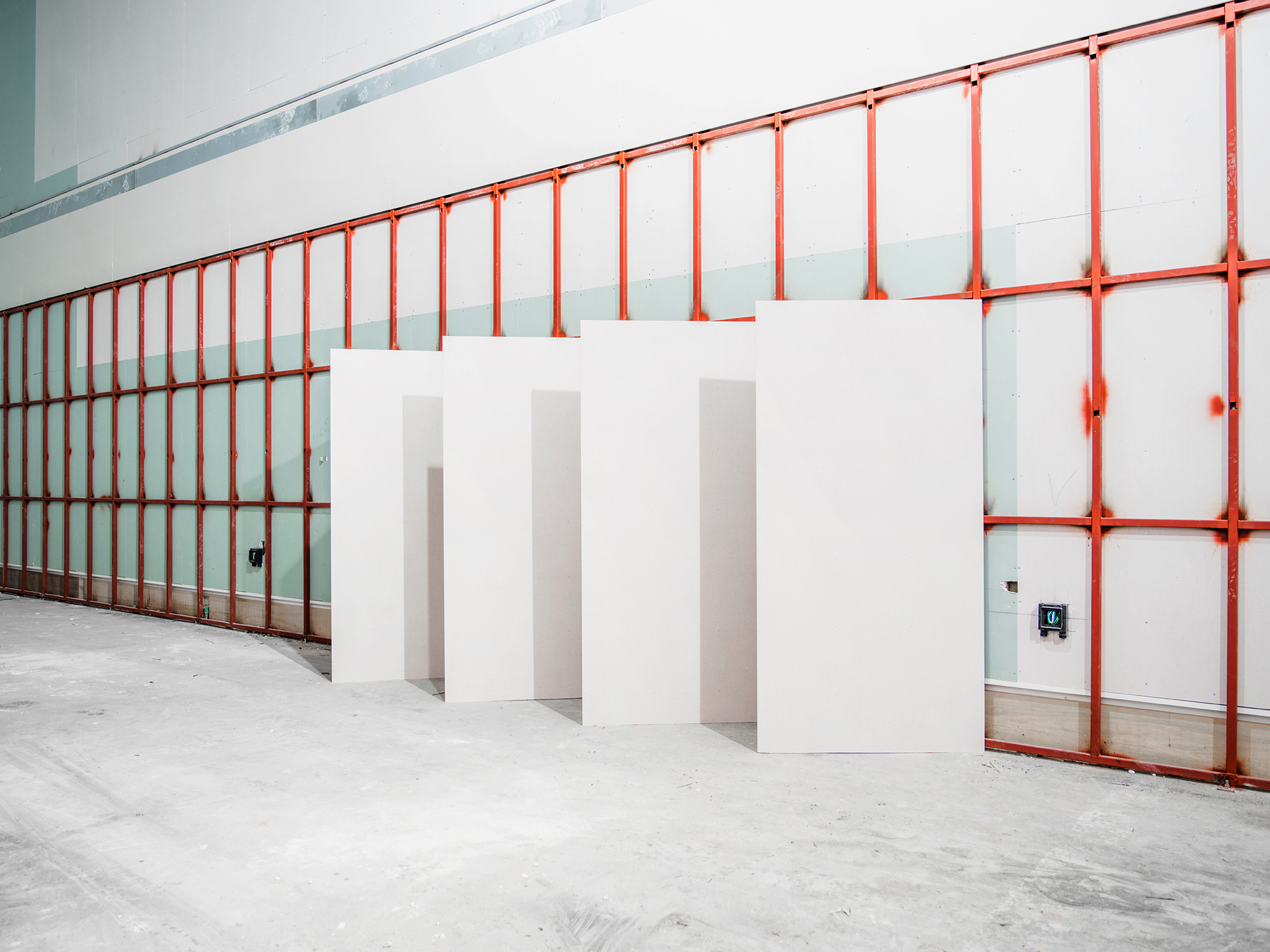 The construction field allows a more intimate and delicate perspective when he captures the sites with photographs. The artist intervenes in the objects inside the building that create space and illustrates the shifts of the interior materials and functions. Sometimes he builds up various formats and aesthetics within the construction site with installation.