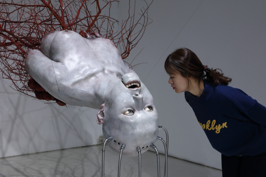 Jinah Rho has been creating interactive AI robotic sculptures and real-time interactive videos that combine sculpture and new media, allowing audience interaction. She is interested in the redefined relationships between humans and non-human entities within the development of technological civilization. The artist raises questions about the definitions of machine and life by exploring the philosophical implications of these relationships in an interactive manner within the exhibition space.