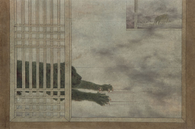 To express these aspects of conflict and mental illness, the artist adopts the traditional methods and story materials of oriental paintings from the past. In Lee Eunsil’s paintings, the vividly wriggling tigers are immersed in animal instincts on behalf of humans, and the traditional houses in their dismantled form give the screen a structure with various meanings.