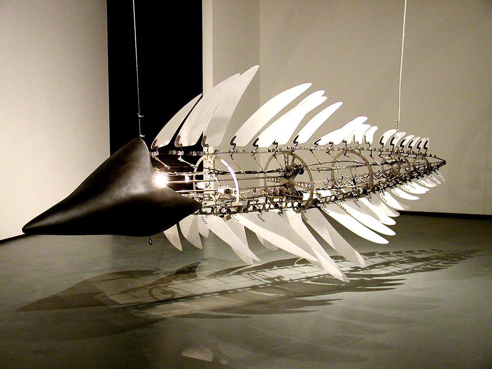 This trajectory extends through the mythic frame of Arbor Deus and Custos Cavum, settling into an approach that treats causal relations between technological civilization and human behavioral patterns through narrative structures. Core motifs remain consistent in his oeuvre: (1) translating conditions of life into physical algorithms such as breathing, repetitive motion, and autonomy; (2) installing fictional narratives in the gallery as manuals, records, and research reports; and (3) embedding social allegory within large-scale devices.