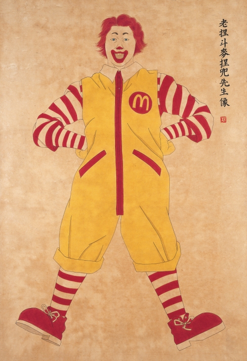 In his early work, some characters represent heroes and villains of Hollywood movies and pop culture stars like Michael Jackson and he shows them as traditional portraits. Also, he reinterpreted typographical logos with various commercial brands. His works are evaluated (or interpreted) as a satire of the current era to spur contrast between materials and forms. It generates a cross-section of Western culture in the oriental method.