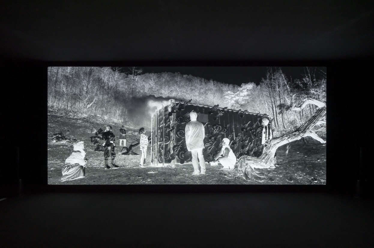 Belated Bosal (2019) weaves together images of contemporary disaster and Buddhist allegory through negative imagery to portray the inner chaos and collapse of values in Korean society today. The work questions whether the ghosts of the past and traditional wisdom can serve as conduits for interpreting contemporary crises. Throughout his practice, Park Chan-kyong has consistently diagnosed the present through the past, reviving the potential of those suppressed or forgotten.