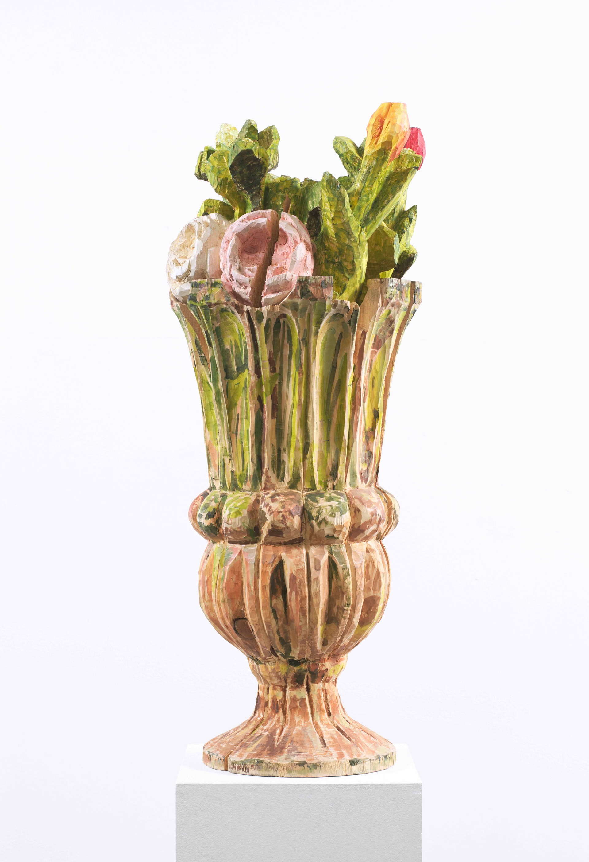 Rhee’s formal strategies involve a deep engagement with materials such as wood, paper, and acrylic, which he uses to open up a dialogue between sculpture and painting. In the 'Flower Vase' (2018) and 'Flower Pot' (2018–) series, he sculpts objects frequently found in still-life paintings and reinterprets them as flat images, thereby enacting a dual circulation between sculpture and painting. Working quickly with the grain and texture of wood, he creates voluminous forms, then applies color in a way that evokes painterly illusions, generating a dynamic interplay between physical and visual sensation.