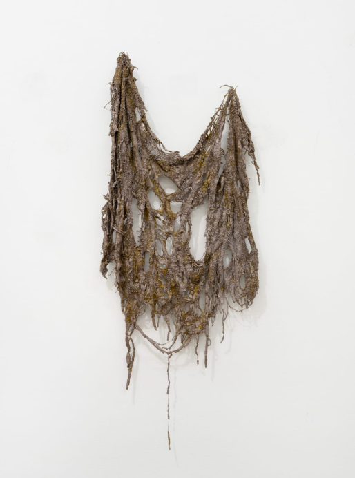 Untitled (hanging burlap with many holes in cement and rubber #1) - K-ARTIST
